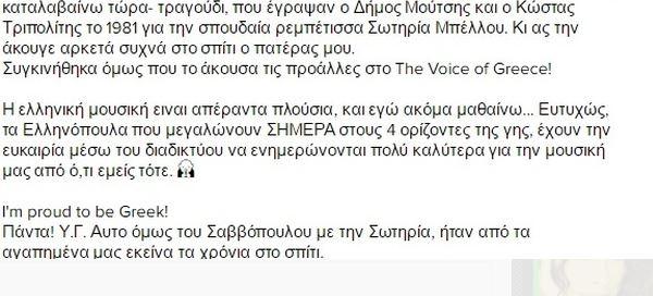 Συγκινήθηκα όμως που το άκουσα τις προάλλες στο The Voice of Greece!
