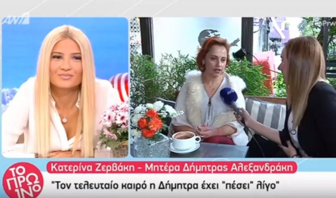 Η μητέρα της Δήμητρας Αλεξανδράκη μίλησε στην κάμερα του Πρωινού και πήρε θέση για όσα γράφονται τις τελευταίες μέρες σχετικά με τη σχέση της κόρης της με τον Δημήτρη Μηλιώνη.