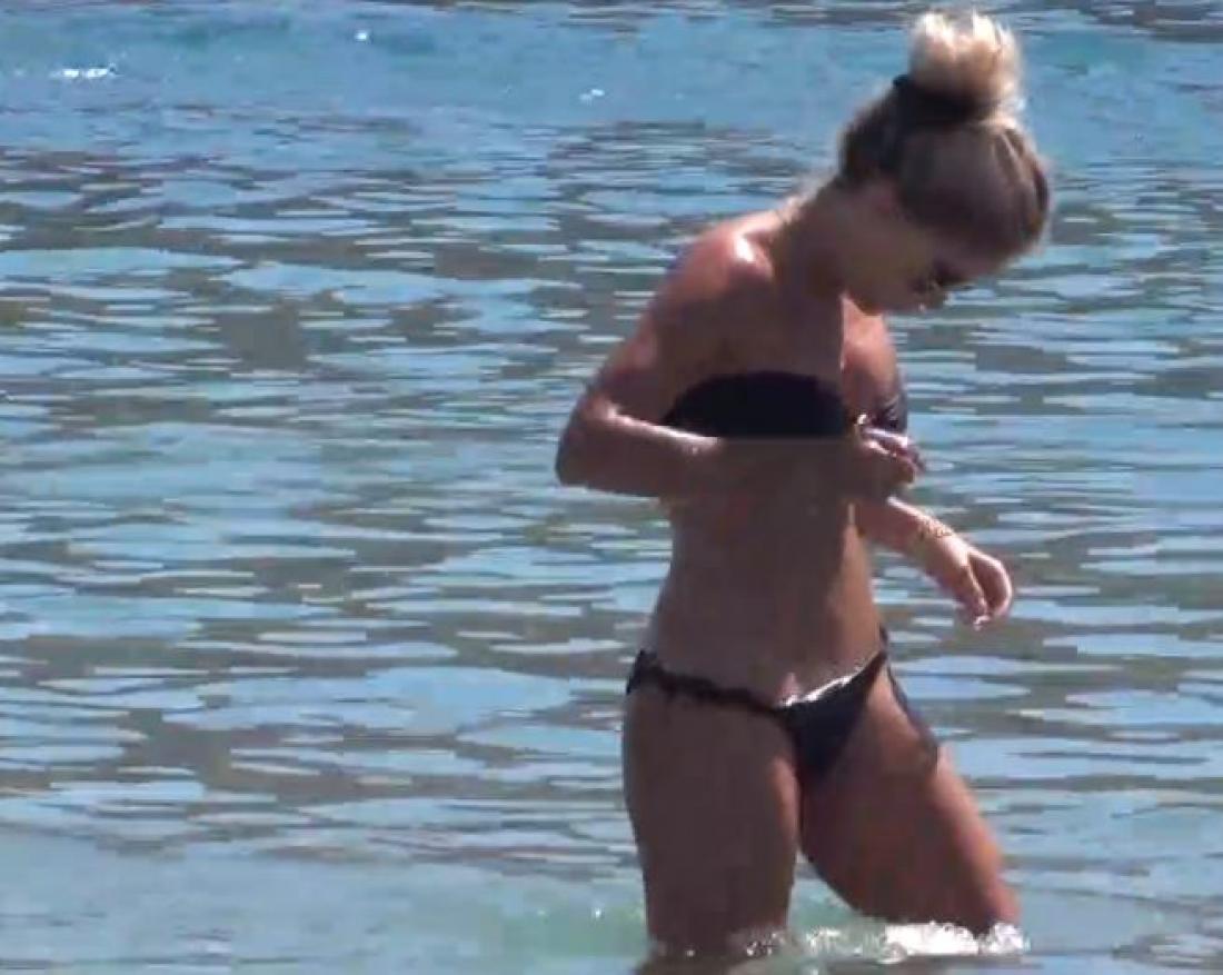 Το Mykonos Live TV την εντόπισε σε κοσμική παραλία. Φορώντας μαύρο μπικίνι και γυαλιά ηλίου καθρέφτες εντυπωσίασε, ενώ απέδειξε πως είναι πολύ κοκέτα, καθώς η κάμερα την απαθανάτισε να τσεκάρει το μακιγιάζ της στην ξαπλώστρα.