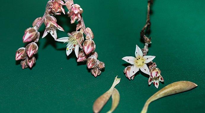 Είναι λεπτό με μίσχο και συνήθως φθάνει σε ύψος τα 300 εκατοστά. Το φυτό με χυμώδη φύλλα και άνθη σε έντονο ροζ και λευκό χρώμα «πεθαίνει το καλοκαίρι και αναπτύσσεται ξανά το φθινόπωρο» δήλωσε ο συντάκτης της μελέτης Μαρκ Ντοντέρο, ο οποίος ανακάλυψε το φυτό και ο οποίος έχει σπουδάσει στο Πανεπιστήμιο του Σαν Ντιέγκο.