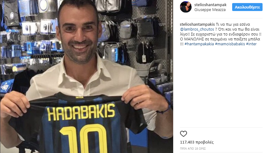 Ο Λάμπρος έφτιαξε μία φανέλα της Ίντερ, στην οποία έχει παίξει και ο ίδιος, με το όνομα του γιου του Στέλιου.