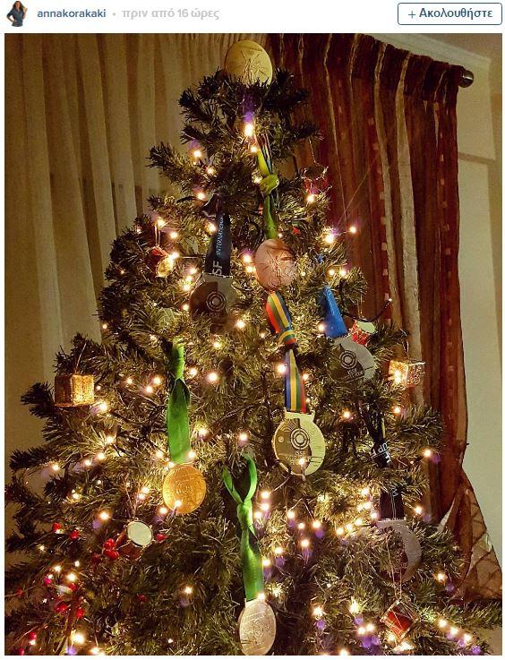 Χριστούγεννα 2016: Η Άννα Κορακάκη στόλισε το δέντρο με τα μετάλλιά της (ΦΩΤΟ)