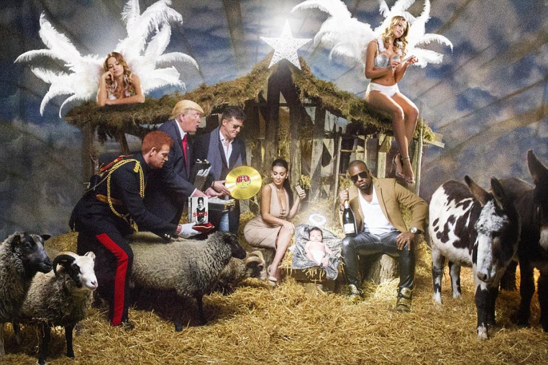 Στη θέση της Μαρίας και του Ιωσήφ το ζεύγος Κιμ Καρντάσιαν και Κάνιε Γουεστ, ενώ ο μικρός τους γιος Σέιντ είναι ο Χριστός.