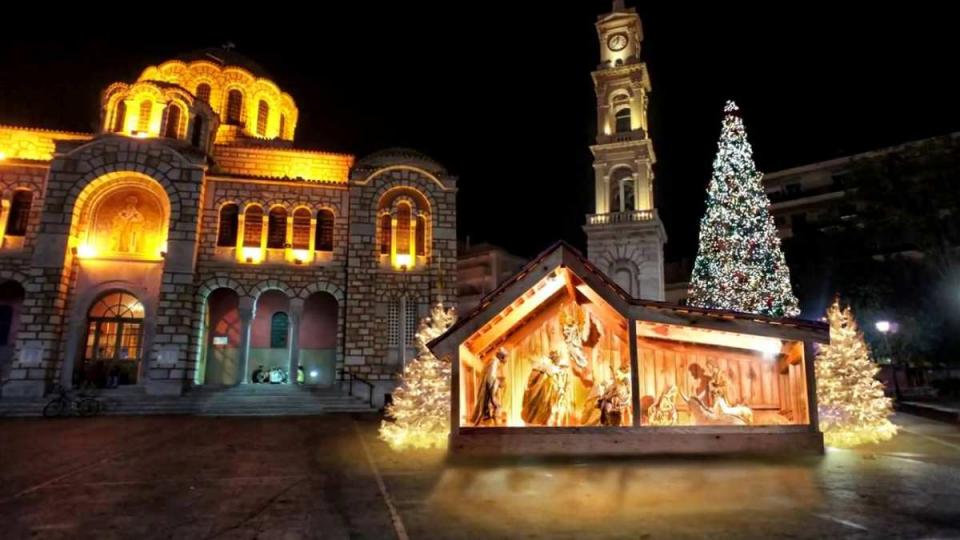 Θα έχει ύψος 23 μέτρα και έχει ήδη ξεκινήσει να στήνεται στην πλατεία Ρήγα Φεραίου, όπου θα λειτουργήσει και το Χωριό του Αϊ Βασίλη. Τη φωταγώγηση, τόσο του δέντρου, όσο και ολόκληρης της πόλης, θα κάνει ο Σάκης Ρουβάς. Επί σκηνής μαζί με τον Έλληνα καλλιτέχνη θα βρεθούν 110 παιδιά από το Δημοτικό Ωδείο Βόλου, που θα τραγουδήσουν μαζί του, θα υπάρχουν 32 μουσικά όργανα, η Φιλαρμονική και 40 χορευτές.