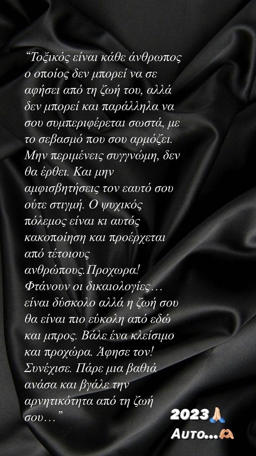Η παρουσιάστρια του Alpha μοιράζεται συχνά τις σκέψεις της με τους διαδικτυακούς της φίλους και το ίδιο έκανε και σήμερα τονίζοντας πως ο αχάριστος άνθρωπος είναι ένα τοξικό όν που πρέπει να διώχνουμε από την ζωή μας προκειμένου να διασφαλίσουμε την ψυχική μας υγεία!