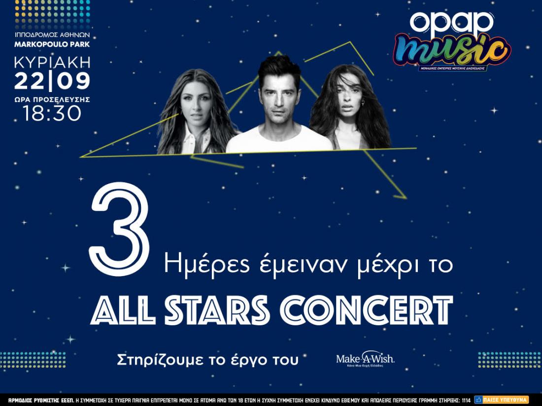 Οι πόρτες για το κοινό θα ανοίξουν στις 18:30. Τα εισιτήρια για το All Stars Concert κοστίζουν 5 ευρώ και η προπώληση πραγματοποιείται μέσω.
