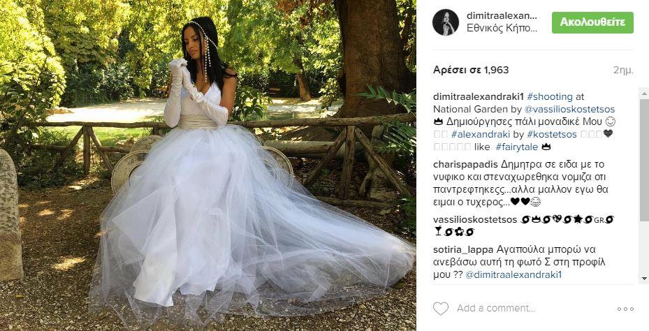 Με νυφικό εμφανίστηκε έξω από την Βουλή η Δήμητρα Αλεξανδράκη και όλα τα φλας έπεσαν επάνω της, όπως είναι φυσικό. Το γνωστό μοντέλο έκλεψε την παράσταση και φωτογραφήθηκε με νυφικό για τις ανάγκες φωτογράφισης διαφημιστικής καμπάνιας.