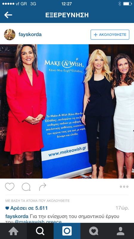 Η Φαίη Σκορδά , ντυμένη στα μαύρα ,λόγω πένθους για τον αγαπημένο της πεθερό, που πριν λίγες ώρες είχε γίνει η κηδεία του, δεν μπορούσε να μην παρευρεθεί στην εκδήλωση. αφού είναι η πρέσβειρα του Make A Wish Ελλάδος. Η ίδια στην εκπομπή "Το Πρωινό Μου" ,την ίδια μέρα είπε ότι έχασε τον καλύτερο πεθερό του κόσμου!