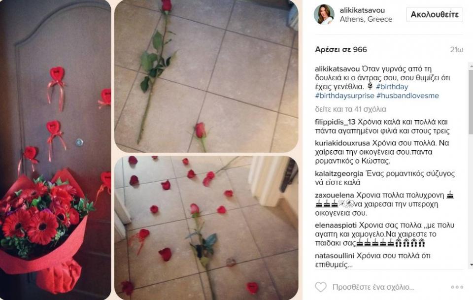 "Όταν γυρνάς από τη δουλειά κι ο άντρας σου, σου θυμίζει ότι έχεις γενέθλια.", έγραψε η Αλίκη στη λεζάντα της φωτογραφίας που ανέβασε.