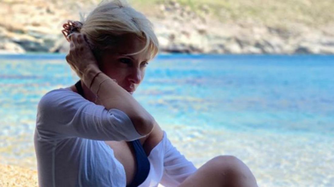 Η Ελένη Μενεγάκη, άβαφη, στην παραλία στην Άνδρο (ΦΩΤΟ)