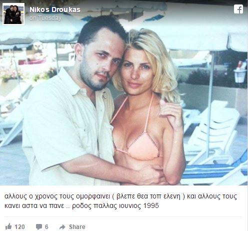 «Άλλους ο χρόνος τους ομορφαίνει (βλέπε θεα τοπ Ελένη) και άλλους τους κάνει άστα να πάνε... Ρόδος Παλλάς, Ιούνιος του 1995», έγραψε ο ίδιος στην λεζάντα.