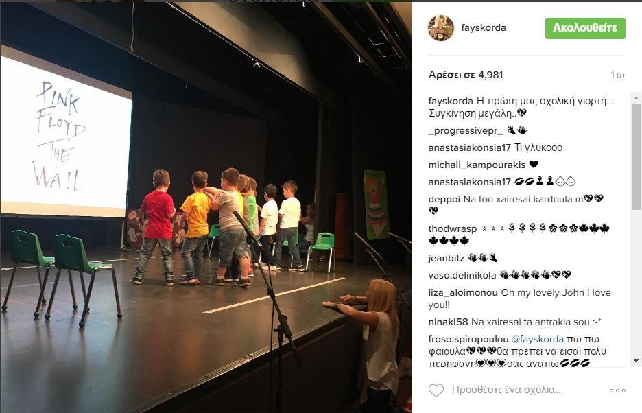 Την φωτογραφία της συνόδευσε το σχόλιο: «Η πρώτη μας σχολική γιορτή... Συγκίνηση μεγάλη..» .