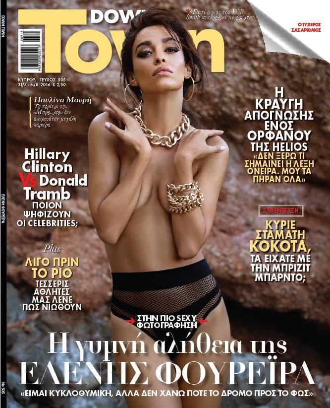 Φορώντας απλά ένα εντυπωσιακό μαγιό και φροντίζοντας να καλύψει με τρόπο το γυμνό της στήθος η τραγουδίστρια αποκαλύπτει για άλλη μια φορά τη σέξι πλευρά της ποζάροντας τόπλες στο εξώφυλλο του κυπριακού Down Town.