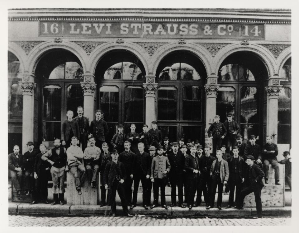 Η δερμάτινη ετικέτα, που απεικονίζει δύο άλογα να τραβούν ένα τζιν, προστέθηκε στο πίσω μέρος του παντελονιού το 1886, και "γεννήθηκε" η εταιρία Levi Strauss & Co, το 1853.