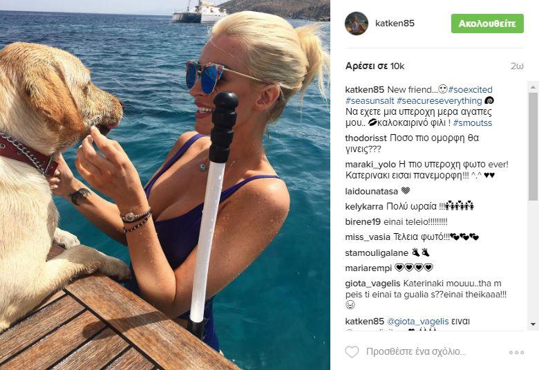 Η Κατερίνα παρά το γεγονός ότι τελείωσε το τριήμερο, συνεχίζει τις διακοπές της και ανέβασε μια πολύ όμορφη φωτογραφία της με έναν σκύλο, στο Instagram: