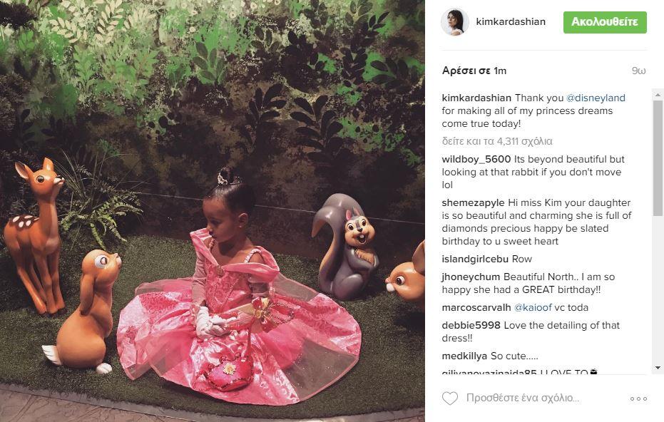 Μάλιστα, η Κιμ ανήρτησε στον λογαριασμό της στο Instagram, την κορούλα της να είναι ντυμένη πριγκίπισσα , σαν να "ξεπήδησε" από το παραμύθι της Ωραίας Κοιμωμένης, τότε που τραγουδούσε με τα ζωάκια στον βάλτο, ψάχνοντας τον πρίγκιπά της!