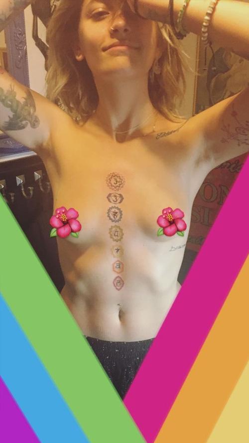Η 19χρονη Πάρις απέκτησε, λοιπόν, ένα ακόμα , στο «ζωγραφισμένο» με μελάνι κορμί της, και θέλησε να το μοιραστεί με τους διαδικτυακούς της φίλους. Για να συμβεί αυτό, ωστόσο, έπρεπε να ποζάρει τόπλες -όπερ και εγένετο!