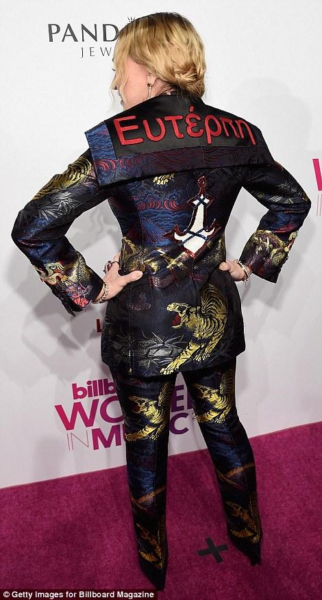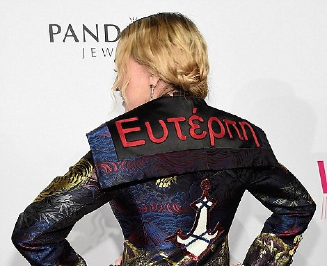 Μια μεγάλη βραδιά για τις γυναίκες της μουσικής και η Μαντόνα βρήκε τον καλύτερο τρόπο να τις τιμήσει: Φόρεσε ένα σακάκι που στην πλάτη έγραφε ελληνικά "Ευτέρπη", το όνομα της μούσας της μουσικής!
