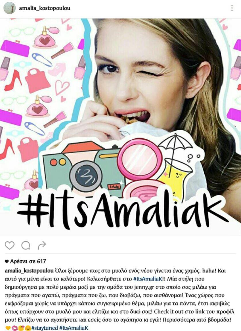 Για τη νέα της στήλη στο site της μητέρας της (jenny.gr) μας πληροφόρησε μέσω του προφίλ της στο Instagram η Αμαλία Κωστοπούλου, Κόρη του Πέτρου Κωστόπουλου και της Τζένης Μπαλατσινού.