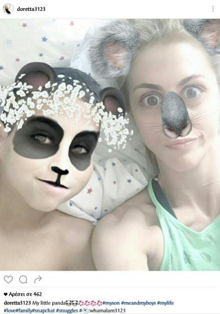 Δείτε την φωτό όπου με εφαρμογή του Snapchat η Ντορέττα είναι σαν ποντικάκι και ο γιος της πάντα.