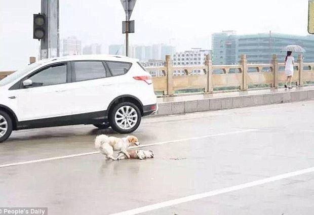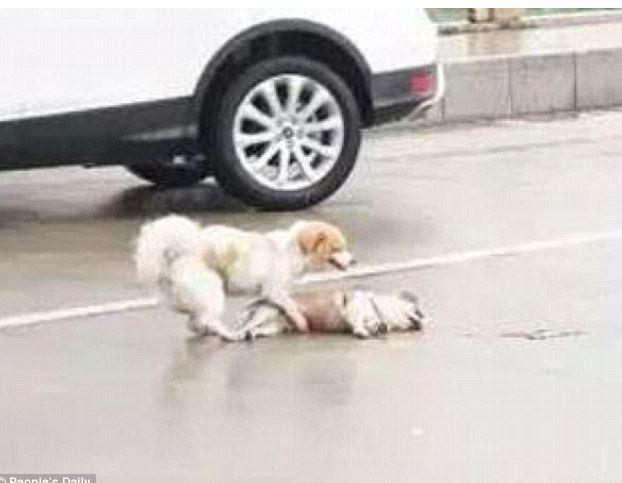 Αυτή είναι η συγκινητική στιγμή που ένας σκύλος προστατεύει το σώμα του νεκρού φίλου του μετά από ένα ατύχημα με αυτοκίνητο. Ο σκύλος προσπαθούσε να ξυπνήσει τον φίλο του στην πόλη Dongguan της νότιας Κίνας στις 9 Σεπτεμβρίου, σύμφωνα με το People's Daily Online.
