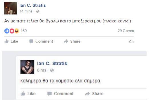 Με ένα μήνυμα άκρως προκλητικό που είχε ως αφορμή το προηγούμενο περιστατικό του X-Factor , ο Ίαν Στρατής αυτή τη φορά, θέλησε να παροτρύνει τους Fans του να τον οδηγήσουν μέχρι τον τελικό με αντάλλαγμα φυσικά! Να βγάλει το μποξεράκι του !