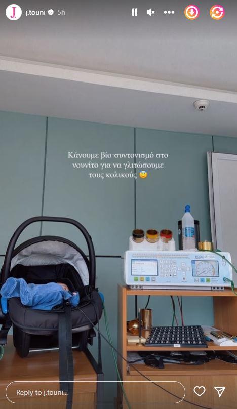 Ωστόσο, σήμερα η Ιωάννα Τούνη και ο Δημήτρης Αλεξάνδρου πήγαν τον 1,5 μηνών γιο τους στο γιατρό για μία εξέταση. Συγκεκριμένα, όπως ενημέρωσε η γλυκιά μανούλα του έκαναν βιο-συντονισμό για να γλιτώσουν τους κολικούς που έχουν τα μωρά.