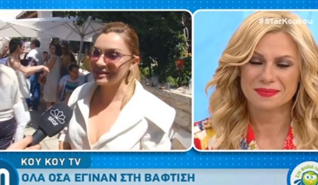 Στη σημερινή εκπομπή το ζευγάρι παρακολούθησε συγκινημένο τα πλάνα από την τελετή ,ε την Κατερίνα Καραβάτου να «λυγίζει» και να βάζει τα κλάματα. Για την παρουσιάστρια ήταν ιδιαίτερη η στιγμή αφού ο γιος της πήρε το όνομα του πατέρα της που έχει «φύγει» από τη ζωή.