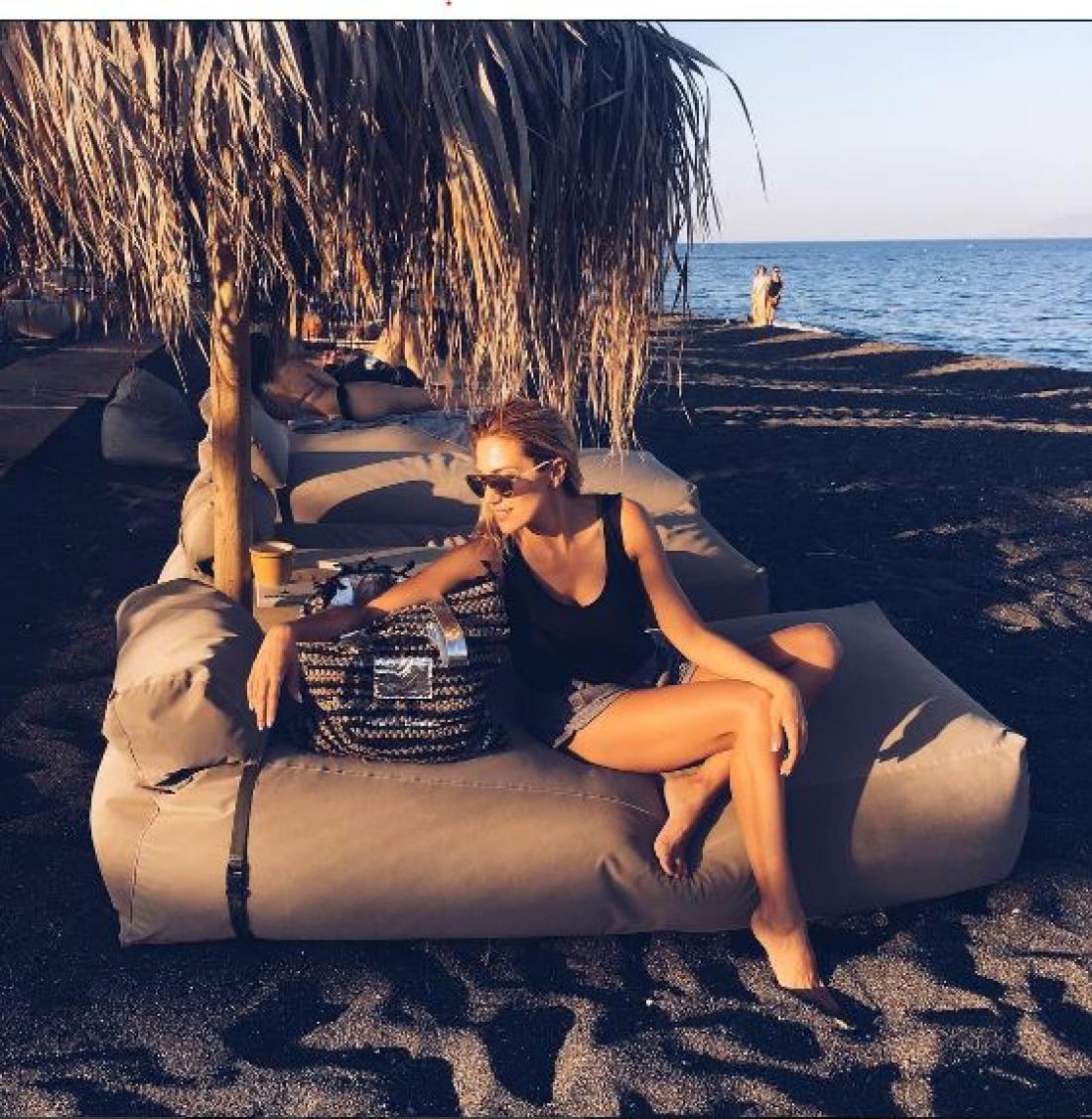 Η όμορφη παρουσιάστρια κάνει διακοπές και δεν σταματά να ποζάρει στην παραλία και στα καλντερίμια.