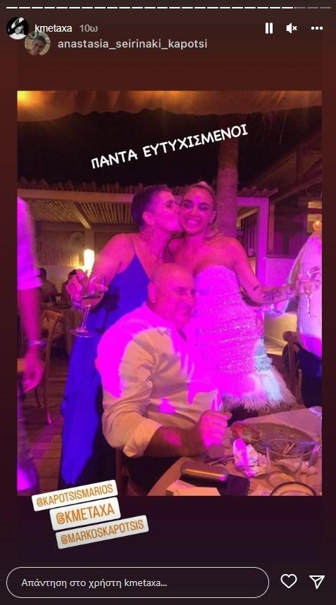 Κάτι τέτοιο έκανε και η μητέρα του Μάριου Καπότση, Αναστασία, η οποία ανήρτησε στο Instagram μια φωτογραφία, στην οποία ποζάρει μαζί με τον σύζυγό της, Μάρκο και τη νύφη της και της δίνει ένα τρυφερό φιλί στο μάγουλο.