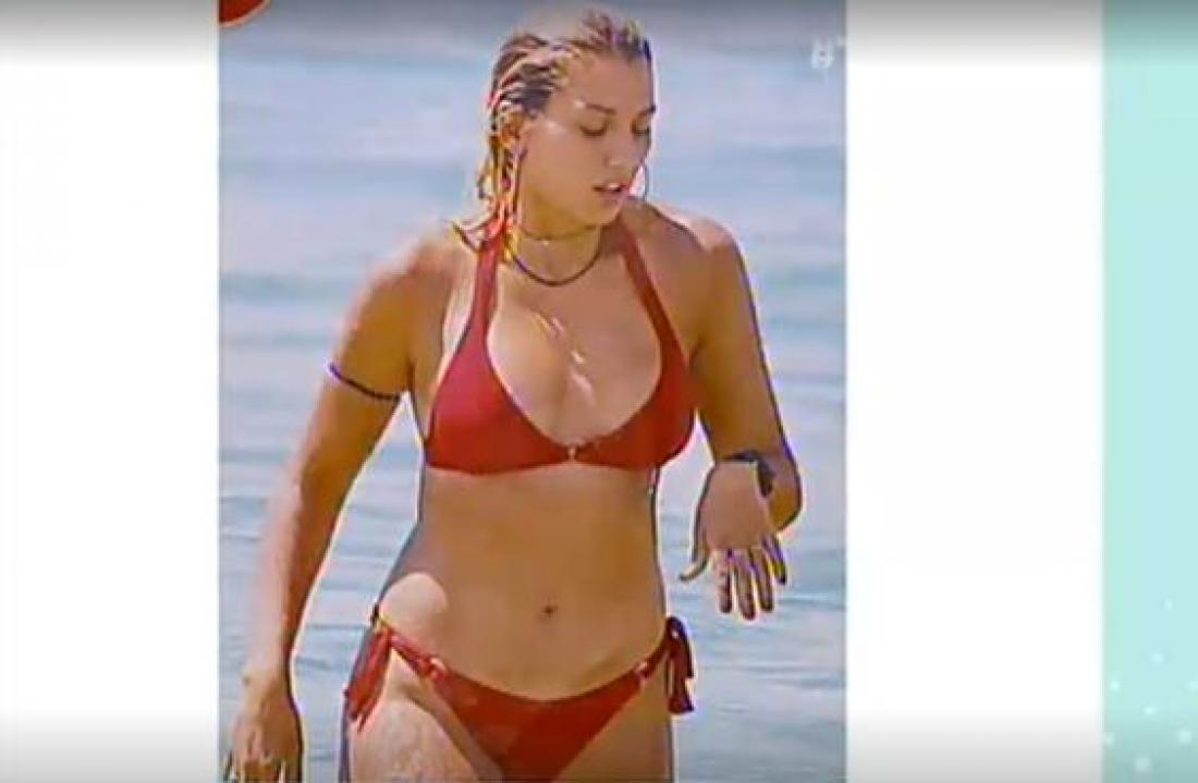 Φόρεσε ένα κόκκινο σέξι μπικίνι τραβώντας όλα τα μάτια πάνω της, επιδεικνύοντας τις σωματικές της αναλογίες.