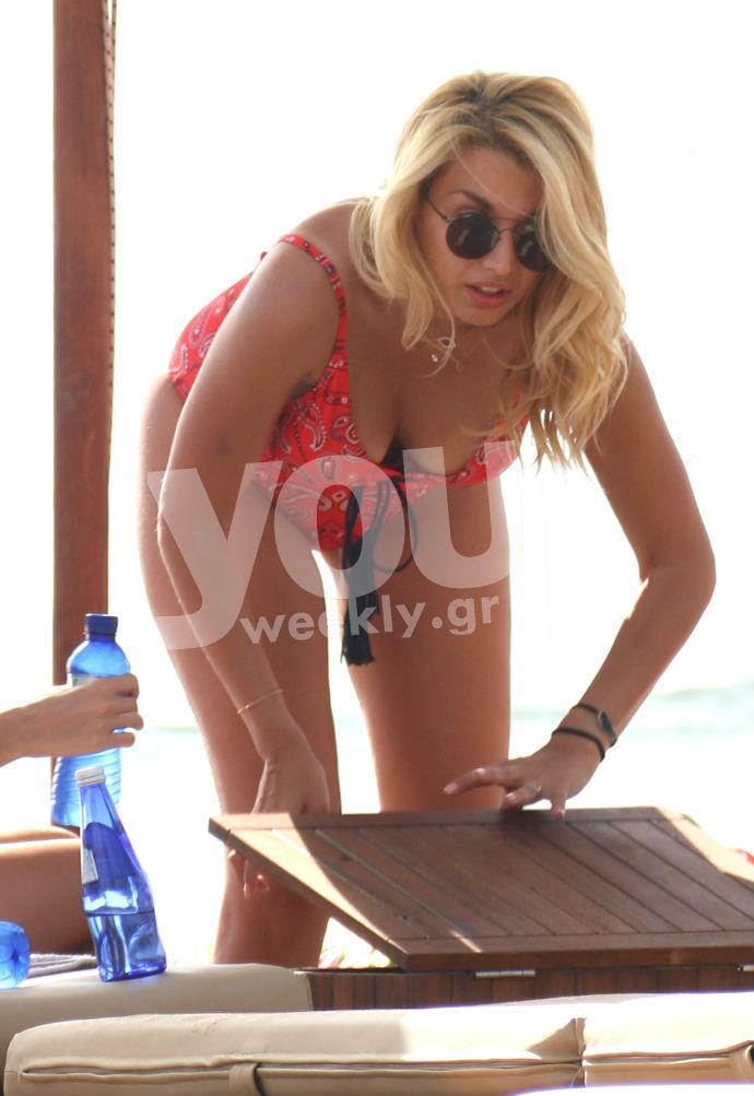 Όπως θα δείτε στις φωτογραφίες ,το ολόσωμο μαγιό της Κωνσταντίνας αναδεικνύει υπέροχα το πλούσιο μπούστο της και τα καλλίγραμμα πόδια της.