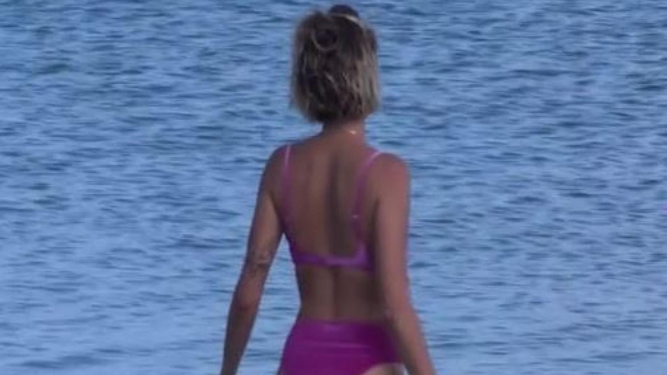 Με φούξια μπικίνι που τόνιζε το καλλίγραμμο σώμα της βούτηξε στην θάλασσα και έκανε τους λουόμενους να μην μπορούν να πάρουν τα μάτια τους από πάνω της. Μετά την βουτιά και Τία απλωτές έβγαλε selfie με έναν θαυμαστή της.