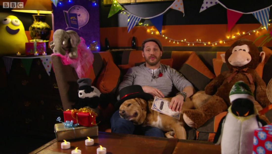 Ο γοητευτικός και υπέροχος ηθοποιός άφησε για λίγο τις βίαιες σκηνές και το γεμάτο τατουάζ κορμί του «Taboo» και ως μάλιστα νέος πατέρας, αποπειράθηκε να διαβάσει ένα παραμύθι στους μικρούς τηλεοπτικούς θεατές.