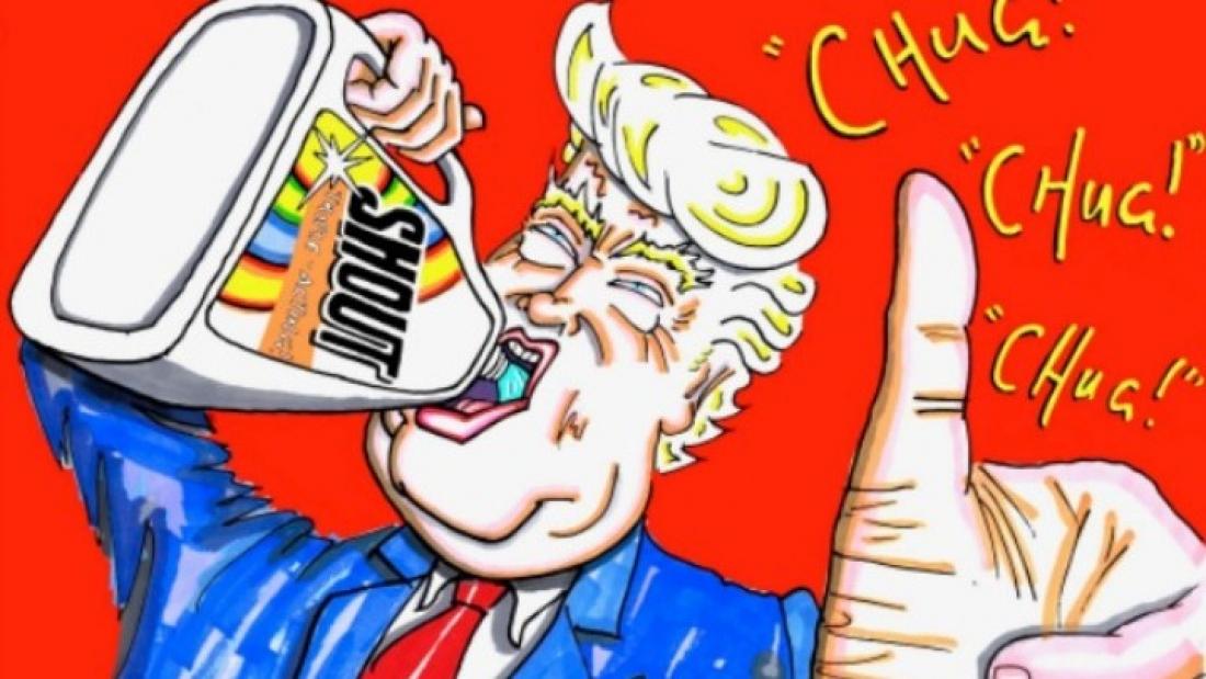 Σε γελοιογραφία που δημοσιεύτηκε την περασμένη Πέμπτη, ο Τραμπ φαίνεται να οδηγεί ένα λεωφορείο του Ρεπουμπλικανικού Κόμματος, ενώ μια οικογένεια τηλεθεατών του τηλεοπτικού δικτύου Fox διασχίζει από διάβαση τον δρόμο με καλυμμένα τα μάτια. «Όταν η Αμερική χρειαζόταν μάσκες, το Fox News τους έδωσε ύφασμα που χρησιμοποιείται για να καλυφθούν τα μάτια» έγραψε ο Τζιμ Κάρεϊ.