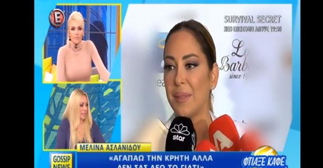 Μελίνα Ασλανίδου : Η τραγουδίστρια μίλησε το πρωί της Πέμπτης στην κάμερα της εκπομπής της Κατερίνας Καινούργιου και δεν έκρυψε τον εκνευρισμό της σε ερώτηση που τις έγινε από τον δημοσιογράφο για τον σύντροφό της.