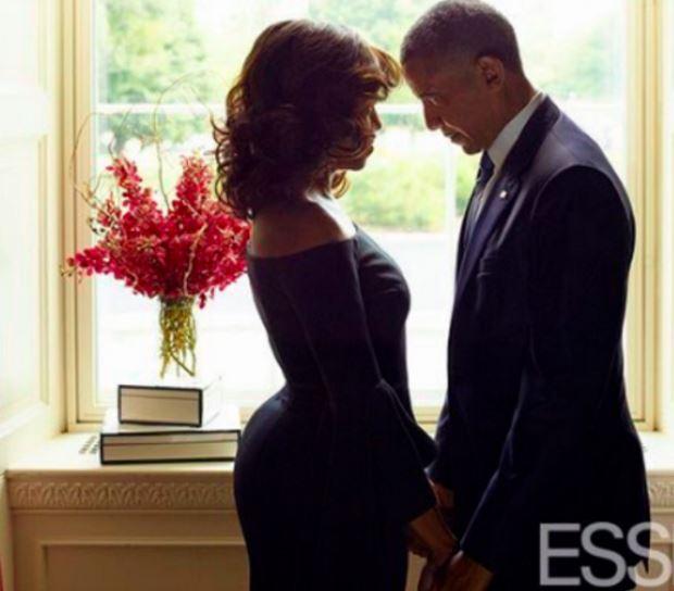 Αυτό που κίνησε το ενδιαφέρον όλων δεν είναι το πόσο χαριτωμένο φαίνεται το ζευγάρι αλλά η πίσω όψη της Μισέλ!Ποια Κιμ; Και ποια Μπιγιόνσε; Οι γλουτοί της Michelle Obama είναι το χαρακτηριστικό της φωτογραφίας που έκλεψε την παράσταση.