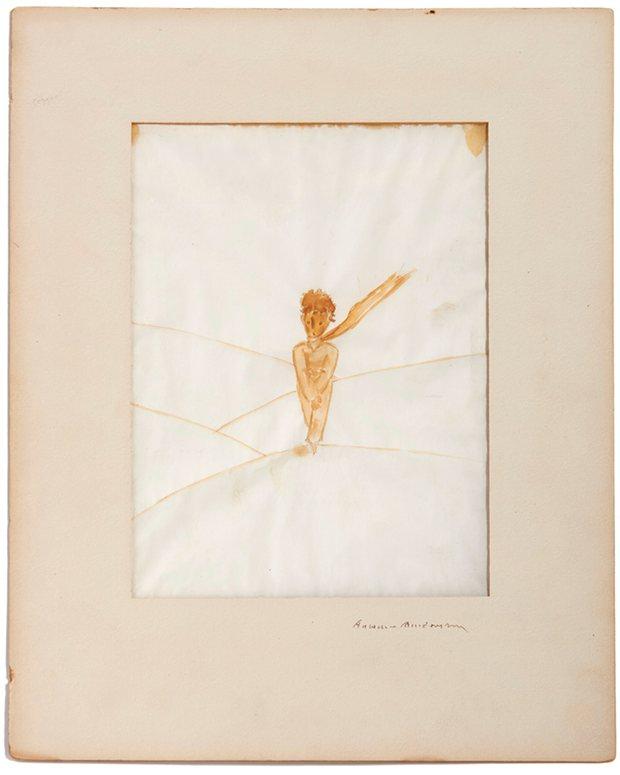 Ακουαρέλα που ζωγράφισε ο Αντουάν Σεντ Εξιπερί για τον Μικρό Πρίγκιπα θα δημοπρατηθεί στις 31 Μαϊου στο Παρίσι από τον οίκο Artcurial. Το σκίτσο δείχνει τον ήρωα να στέκεται στους αμμόλοφους με το φουλάρι του να ανεμίζει.