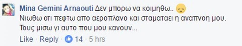 "Δεν μπορώ να κοιμηθώ. Νιώθω ότι πέφτω από αεροπλάνο και σταματάει η αναπνοή μου. Τους μισώ γι' αυτό που μου κάνουν", έγραψε στο πρόσφατο ποστ της.