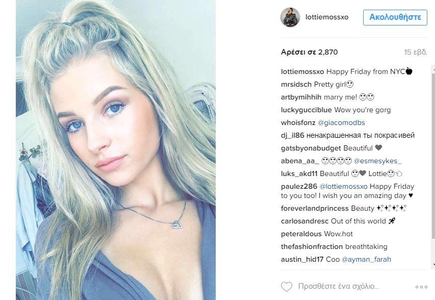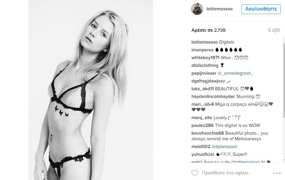 Ποια Κέιτ Μος; Η Λότι, η αδερφή της είναι 18 χρονών και κάνει και αυτή καριέρα στον χώρο του μόντελιγνκ. Είναι λίγο πιο πληθωρική από την αδερφή της και ομολογουμένως πιο σέξι...