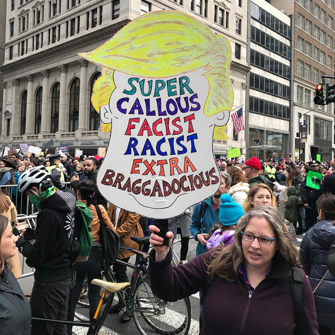 Τα πανό και πλακάτ που κρατούσαν οι διαδηλωτές είναι... απερίγραπτα. Τόσο όσον αφορά τη φαντασία των κατασκευαστών όσο και το χιούμορ που διέκριναν τα σλόγκαν. Χαζεύοντας φωτογραφίες διαδηλωτών, το μάτι στην κυριολεξία δεν ξέρει πού να πρωτοσταθεί. Η photo gallery που παρουσιάζει το Hyperallergic είναι αποκαλυπτική.
