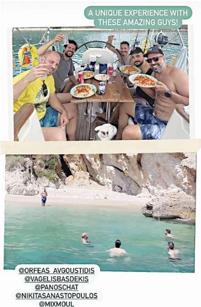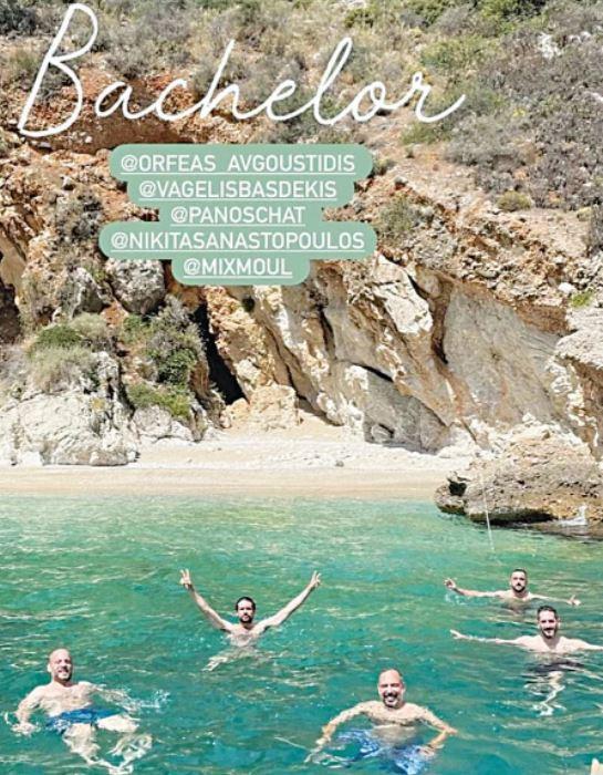 Ο ηθοποιός απέδρασε με τους κολλητούς του στο Ναύπλιο, επιλέγοντας να γιορτάσει τις τελευταίες εργένικες ημέρες του πάνω σε καταμαράν. Τα μέλη της παρέας έκαναν βουτιές, ήπιαν μπίρες και απόλαυσαν μια λαχταριστή μακαρονάδα.