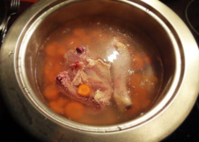 1. Βράζεις τα συκωτάκια σου για 5 λεπτά ή το μπούτι κοτόπουλο όσο πρέπει μαζί με τα καρότα. Τα περνάς όλα από το μούλτι να γίνουν πουρέ.