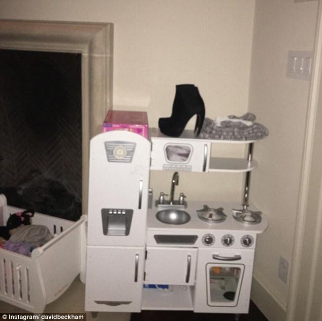 Η πεντάχρονη Χάρπερ "έκλεψε" τα δεκάποντα παπούτσια της μαμάς της Βικτόρια και τα τοποθέτησε ανάμεσα στα παιχνίδια της. Ο Μπέκαμ φωτογράφισε τη γωνιά με τα παιχνίδια της Χάρπερ και τη δημοσιοποίησε.