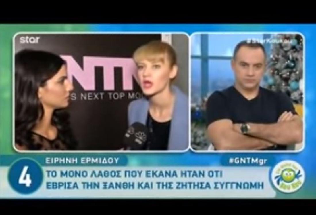 «Η Ξανθούλα έχει το πλεονέκτημα γιατί είναι η μόνη plus size μοντέλο. Κάνει ότι δεν τη νοιάζει, ότι αυτά που λένε για τα κιλά της από το ένα αφτί μπαίνουν και από το άλλο βγαίνουν, αλλά τελικά δείχνει ακριβώς το αντίθετο, φωνάζει, γίνεται έξαλλη και κοκκινίζει. Η Ερμίδου έκανε ένα λάθος και πήγε να της ζητήσει συγγνώμη και η Ξανθούλα την κοίταξε κάπως, με ένα περίεργο βλέμμα, με ύφος, ταπεινωτικά. Ήμουν μπροστά », είπε η .