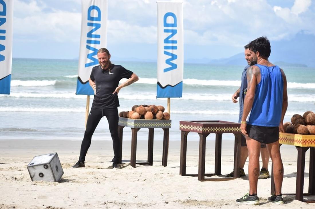 Το σημερινό αγώνισμα θα παιχτεί σε δυο διαφορετικές φάσεις. Στην πρώτη φάση θα πρέπει οι παίκτες να μεταφέρουν καρύδες και να τις τοποθετήσουν επάνω στο τραπέζι. O Γρηγόρης θα πετάει ένα ζάρι το οποίο θα τους δείχνει πόσες καρύδες θα πρέπει να μεταφέρουν. Ξεκινώντας θα πρέπει να περπατήσουν επάνω στις δοκούς και να μεταφέρουν τις καρύδες για να τις βάλουν επάνω στο τραπέζι. Σε όποιον παίκτη πέσει έστω και μια καρύδα από το τραπέζι, τότε θα είναι ο χαμένος του γύρου. Στη δεύτερη φάση του παιχνιδιού θα μεταφέρουν και πάλι τις καρύδες αλλά αυτή τη φορά θα πρέπει να τις πετάξουν μέσα στη μπασκέτα, ώστε το βάρος τους να καταφέρει να σηκώσει ψηλά την σημαία. Ο αριθμός των καρύδων που θα πρέπει να μεταφέρουν κάθε φορά θα καθορίζεται και πάλι από το ζάρι που θα πετάει ο Γρηγόρης.