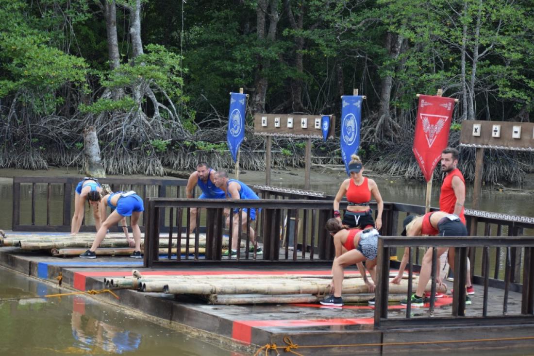Το σημερινό ονομάζεται “river surf boat ” και θα γίνει ως εξής: Δύο παίκτες από κάθε ομάδα θα ανέβουν πάνω σε μια σχεδία. Θα κωπηλατήσουν με τα χέρια μέχρι να φτάσουν στην πρώτη ξύλινη γέφυρα, από την οποία θα πρέπει να απελευθερώσουν ένα κουπί. Εν συνεχεία θα περάσουν κάτω από άλλες δυο γέφυρες που θα βρουν στην πορεία τους. Όταν θα φτάσουν στην τελευταία γέφυρα, θα πρέπει να λύσουν και να ξεκρεμάσουν ένα σωσίβιο. Στο τέλος της διαδρομής, θα πρέπει να στηριχτούν πάνω στη σχεδία τους και να πετάξουν το σωσίβιο, ώστε να το περάσουν στο στύλο. Η ομάδα που θα το καταφέρει, θα κερδίσει έναν πόντο.