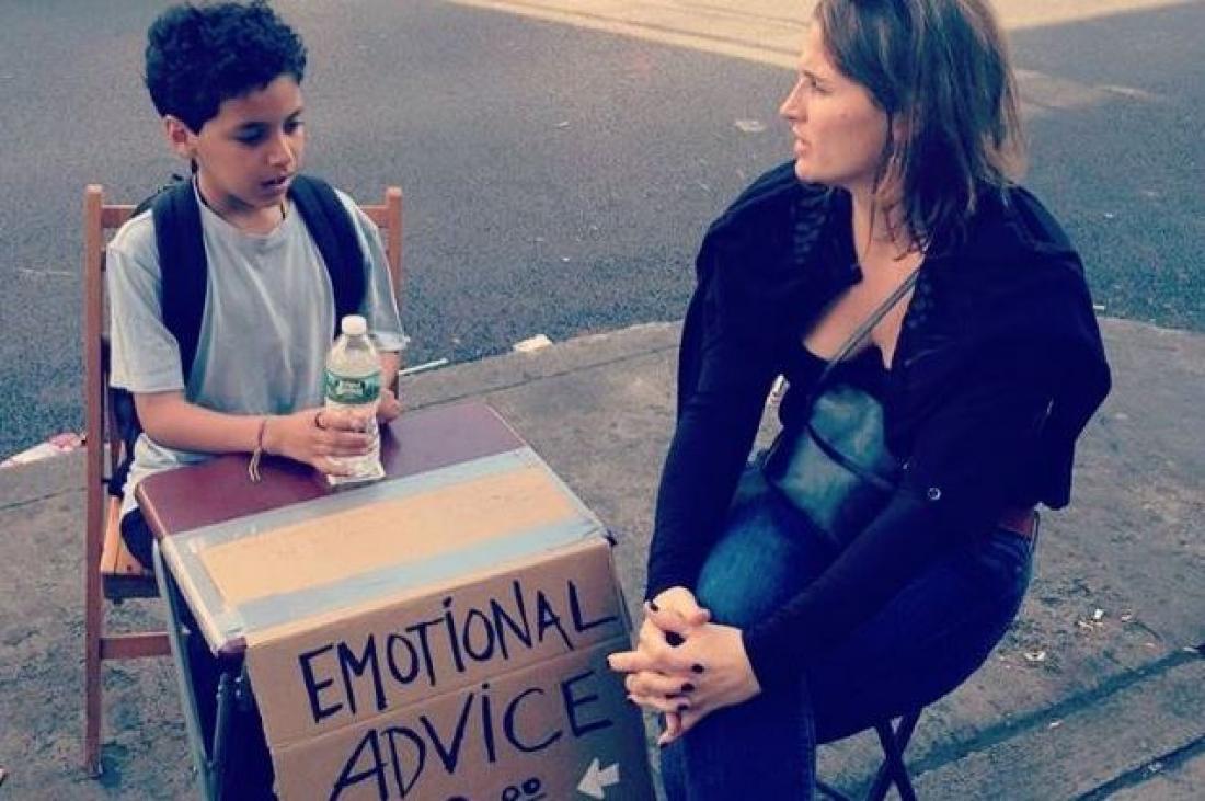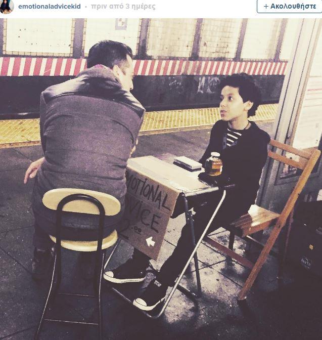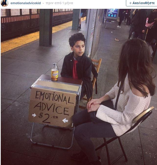 Στο μετρό της Νέας Υόρκης ένας μικρός "ψυχολόγος", ο 11χρονος Ciro Ortiz, έχει στήσει πάγκο με ψυχολογικές συμβουλές. Ο μικρός είναι στην διάθεση κάθε ενδιαφερόμενου για πέντε λεπτά με μόλις 2 δολάρια.