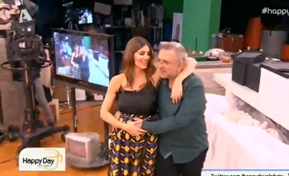 Ο δημοσιογράφος μάλιστα δεν έχασε ευκαιρία να χαϊδέψει την φουσκωμένη κοιλίτσα της Σταματίνας Τσιμιτσιλή . Μπαίνοντας στον πλατό πήρε αγκαλιά την παρουσιάστρια και συζήτησαν για την εγκυμοσύνη της.