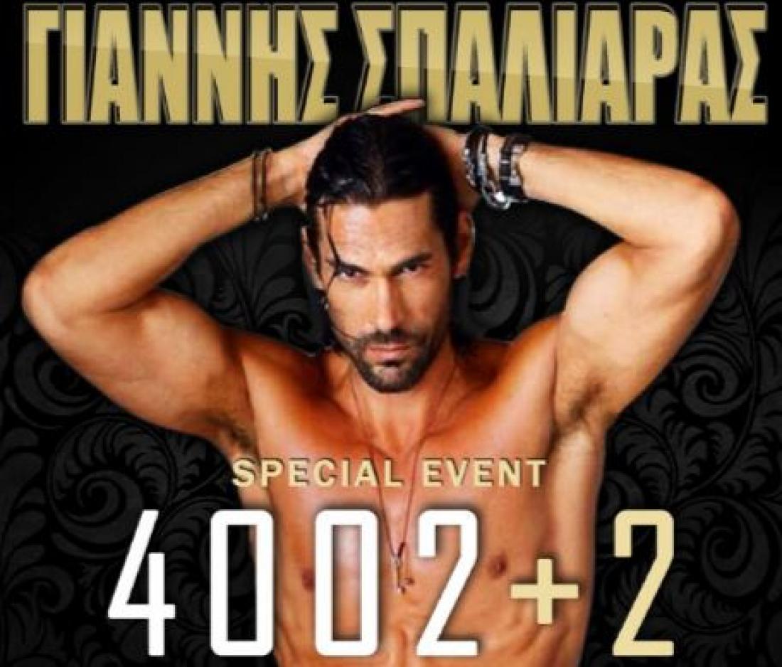 Για τους ενδιαφερόμενους...το πάρτι θα γίνει το Σάββατο 25 Ιουνίου, με guest star το γνωστό μοντέλο. Μάλιστα, η αφίσα του πάρτι έχει ήδη κυκλοφορήσει στις σελίδες των swingers στο διαδίκτυο. Ένας γεμάτος υπονοούμενα τίτλος: «4002+2» και ο Γιάννης Σπαλιάρας να ποζάρει πιο σέξι από ποτέ!